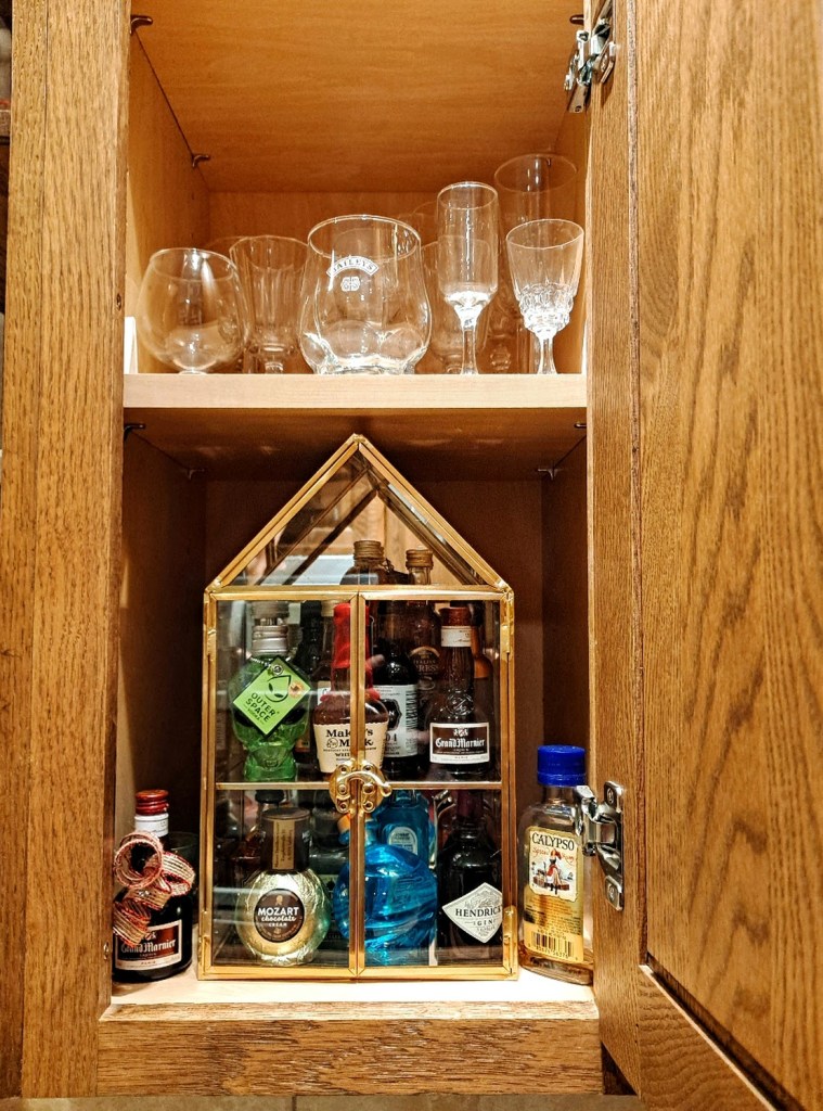 Even considering those special two drinks, that little glass display case sits in my kitchen cabinet mostly unused but delighting me with the thought of finally having my very own miniature liquor cabinet.
