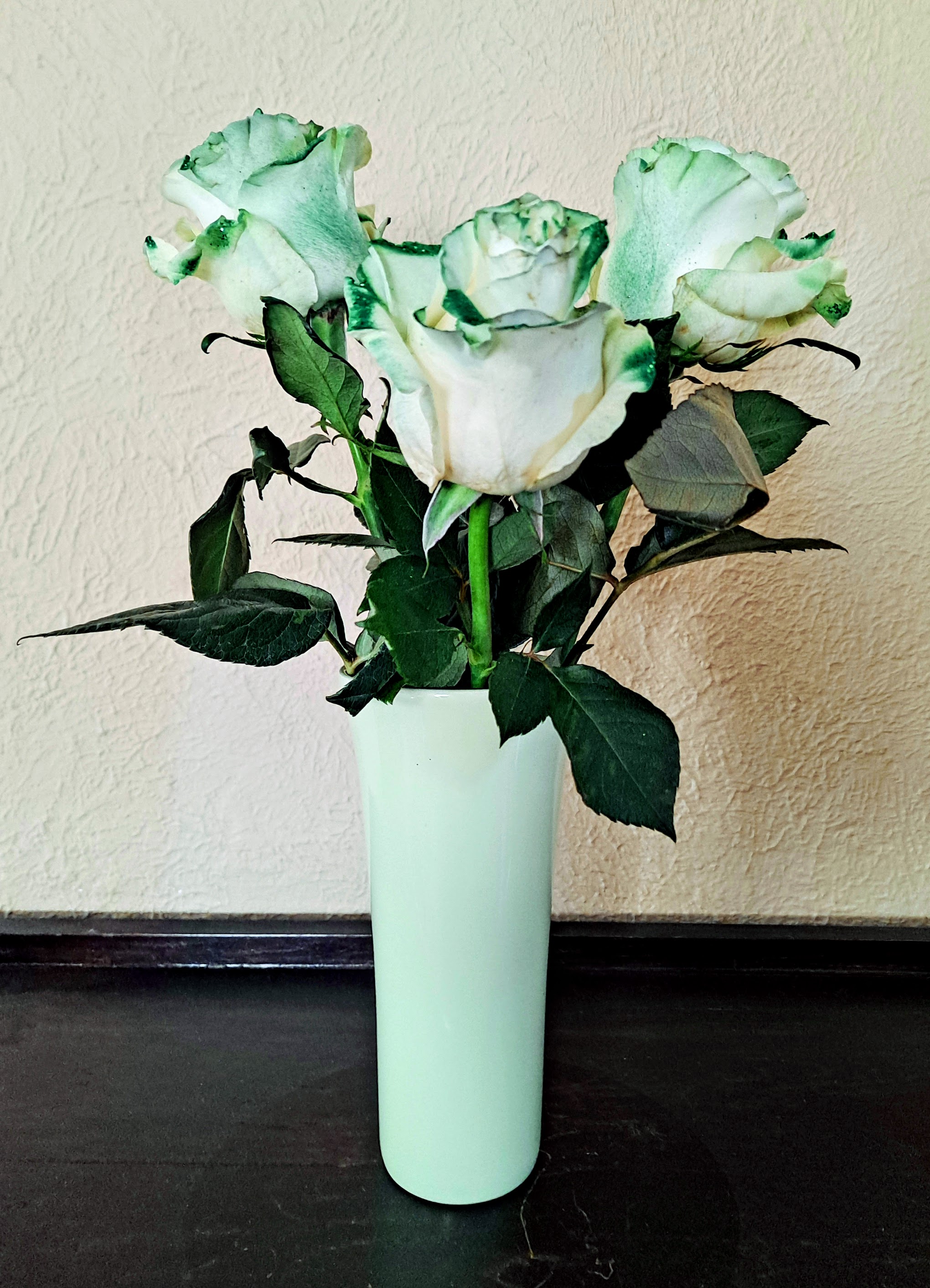The house anniversary is one of the few dates in my life I like to celebrate, and so does my next-door neighbor. (Apparently, I was an answer to her prayer for a good neighbor. Makes me feel special since I’ve never — to my knowledge — been the answer to anyone’s prayers.) To honor the occasion, she gave me these gorgeous roses!