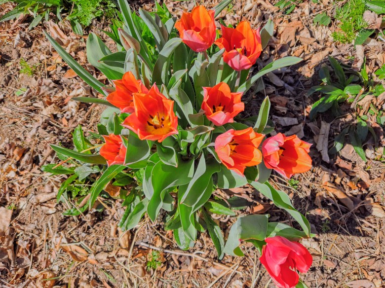 Meantime, there are a few tulips still hanging around, but those were the flowers that got afternoon shade.