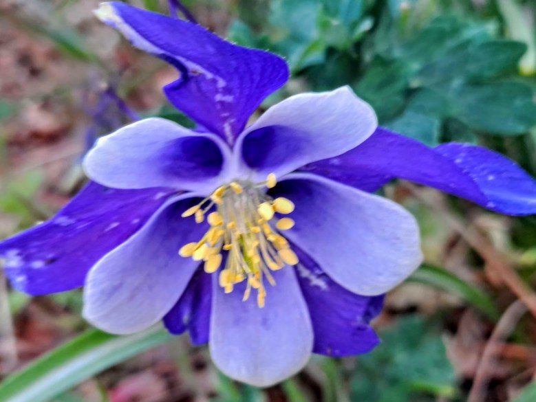 Then there is this photo of a columbine that planted itself. On my phone, the picture was perfect, the color the lovely purple of the plant itself, but when I uploaded it to my computer, it turned blue. Must be the difference when the P3 wide gamut space on my phone was converted to the standard sRGP for web display. I have no idea what that means, but that’s the answer I got when I Googled, “Why is the color different when uploading a picture from my phone. So that’s why, instead of the original purple, you see a blue columbine. Or maybe you see a different color? Purple maybe? Or orchid?