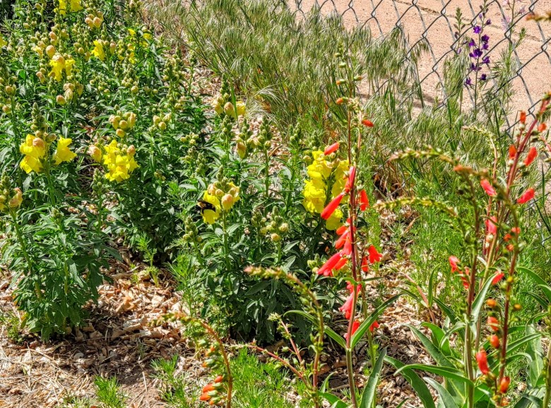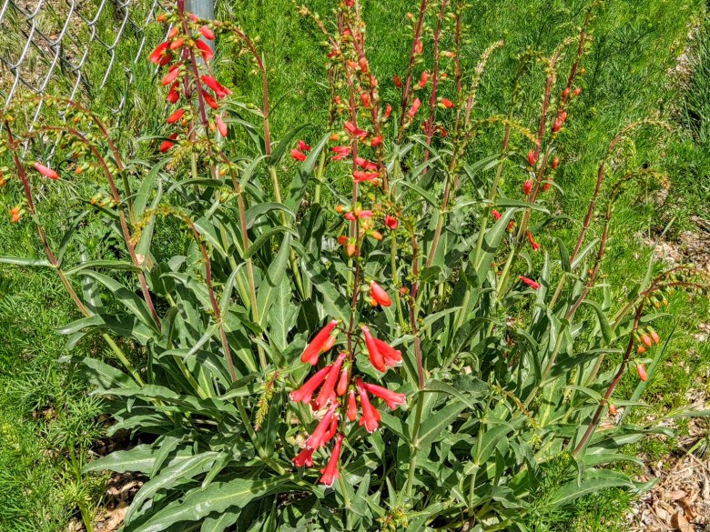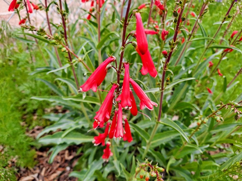 I planted firecracker penstemon seeds three years ago, but it took two years for a few of the seeds to germinate. By the time those few seeds germinated, I’d forgotten all about them and thought they were weeds. Luckily, I realized they weren’t weeds in time to save the last plant. I didn’t know what it was until it flowered. I’m certainly glad I managed to save this last plant.