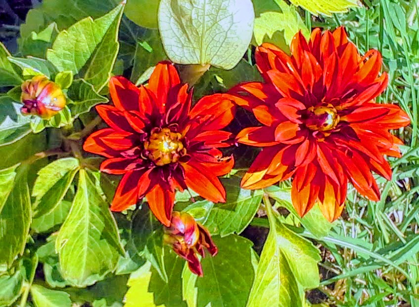 Although such work might not be compelling to others, it is to me, especially this time of year when the cleared gardens stay cleared, and the fall flowers bring intense color to the yard. It’s also fulfilling work in a creative sort of way, with the yard as a canvas I paint with plants. Although the heat-stressed grass hasn’t yet greened up, at least, with the cooler temperatures, I don’t have to worry about additional damage the sun can do, and there’s always hope for the spring.
