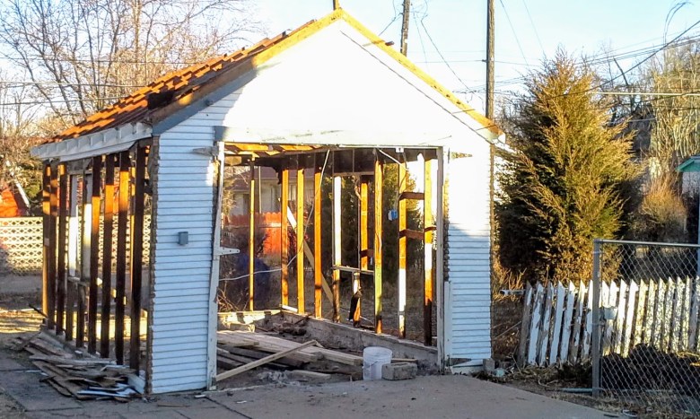 Meantime, the work on the garage is progressing — today they insulated and walled one side of the inside of the building. Yay!