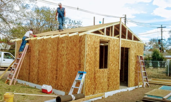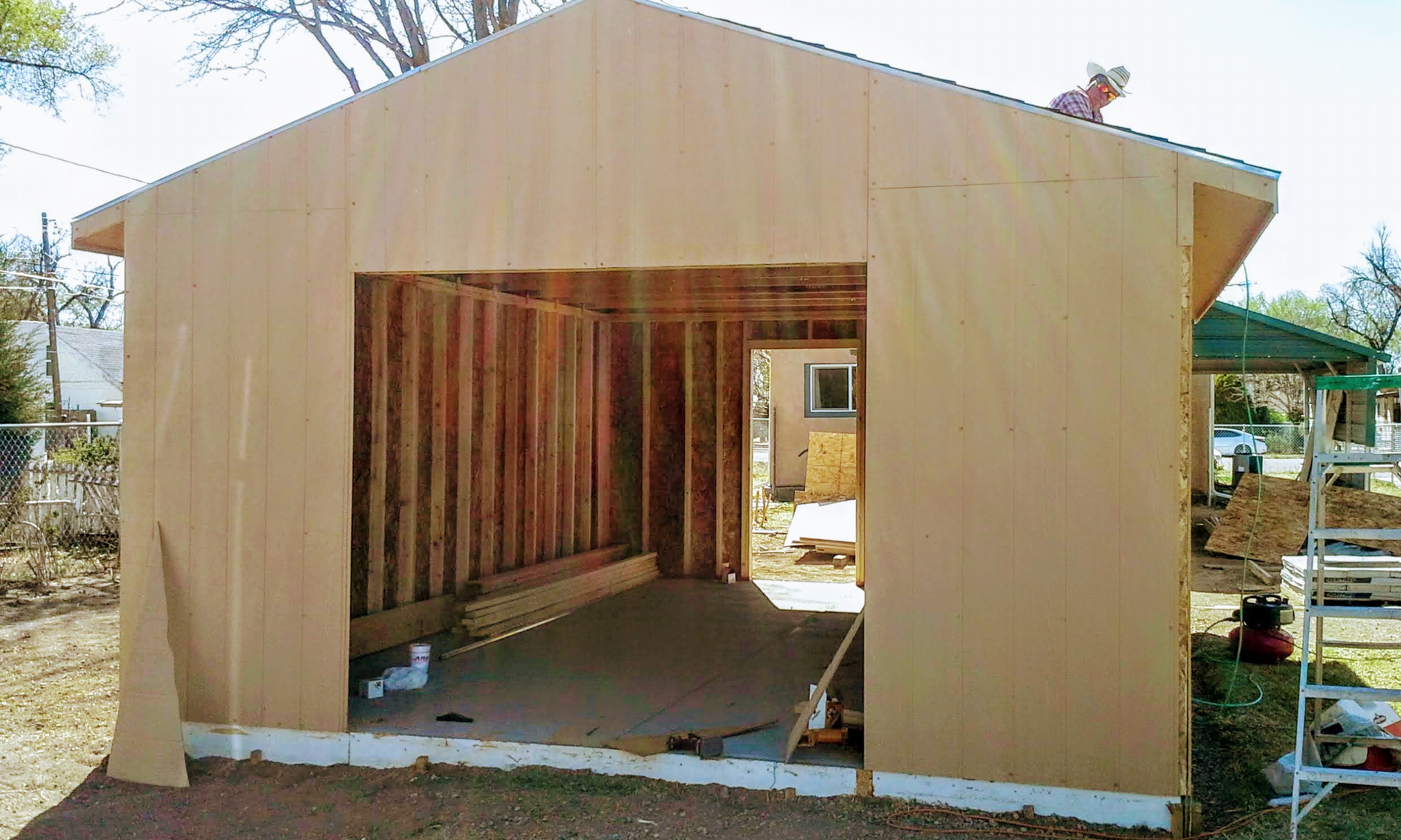 Even better, the garage door, opener, and the rest of the OSB board for the inside walls of the garage were delivered while they were here!!! Oh, my such excitement.