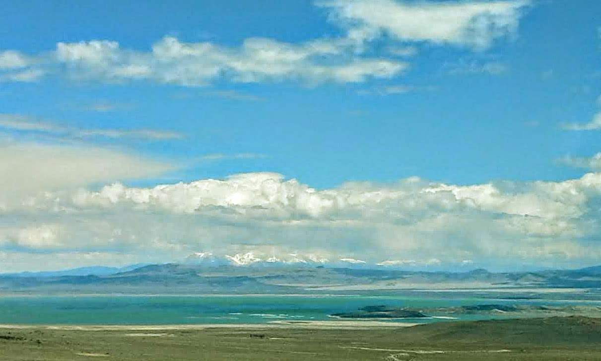 Luckily, there was a place to pull off and get out of the car before I caused an accident. The lake far below in the shadow of the mountains was the loveliest shade of green I had ever seen. Is Mono Lake always that color? I don’t know. But I was blessed to have seen those waters with my own eyes. Later, when road construction forced me to halt by the lake itself,