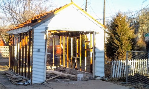 I had my whole property fenced in before we realized that the old garage was not much good for anything, not even a shed, and that it would have to come down.