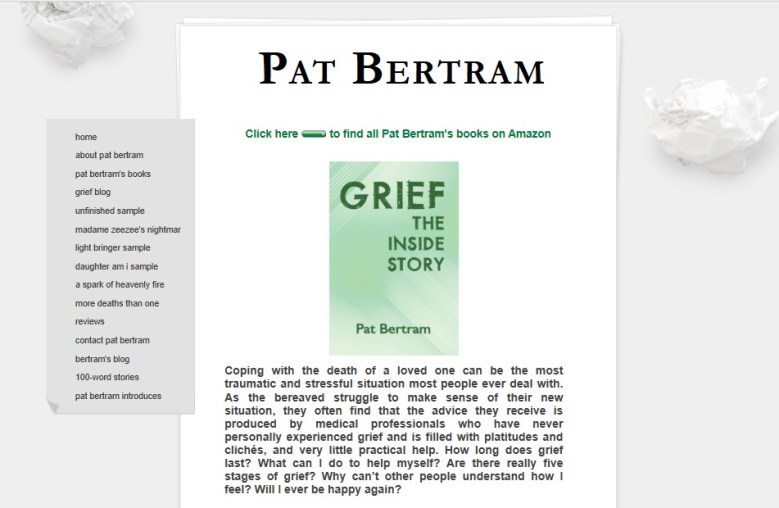 Pat Bertram is the author of Grief: The Inside Story – A Guide to Surviving the Loss of a Loved One. “Grief: The Inside Story is perfect and that is not hyperbole! It is exactly what folk who are grieving need to read.” –Leesa Healy, RN, GDAS GDAT, Emotional/Mental Health Therapist & Educator