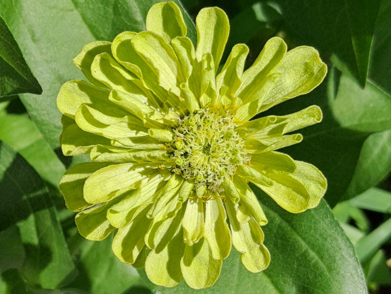 On a happier note: zinnias! Or rather, one lovely green zinnia.