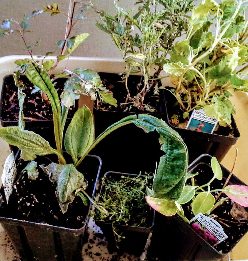 If it weren’t for my tight budget (because of the horrendous increase in my homeowner’s insurance), I’d probably be ordering from the catalog right now. I might still have sneaked in an order for a handful of bulbs — who needs to eat, right? — but I want to wait and see what, if anything, comes up on its own this year. Some of the wildflowers I planted last year were perennials, which might bloom again. Some of the wildflowers reseeded themselves, so they, too might bloom. There are also the flowers that I transplanted, like the New England asters, and the fall plants I got last year to add color to my fading garden. And I have a bunch of seeds to fill in areas where nothing blooms, such as the four ounces of zinnia seeds I bought last fall, the seed packets a relative sent me, the wildflower seeds leftover from the previous fall, the larkspur seeds I harvested.
