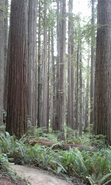 Yesterday I hiked through an old-growth redwood forest. The trail was difficult, mostly because of exposed tree roots and the 80% humidity, but the experience was . . . immense. When there were no other people around with their non-stop chatter, the silence was profound. In spots, a screeching bird or gurgling brook rang clear, and the sound of my footsteps always accompanied me but otherwise . . . silence. And when I stopped to listen, nothing seemed to exist except that soundless forest, not even me.