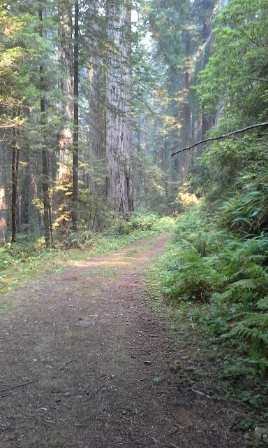 Yesterday I headed out on a 7.2 mile hike, starting on what was called The Damnation Creek Trail. After about three-fourths of a mile I took a turn onto the Coastal Trail. This section of the Coastal Trail lay inland on what was the original Redwood Highway. The highway had been built in the 1920s and abandoned in 1935 because of the difficulty in maintaining it — it kept crumbing and was beset with rockslides. (Ironically, on the drive to the trail head, my friend talked about recent discussions to move the current road further inland because it too is crumbling.) In spots, the pavement with the white center line showed through, and even a few of the original mile markers remained.