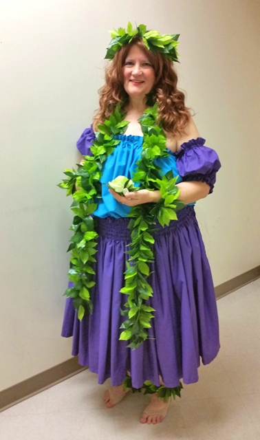 But . . . I promised. So I will go. I also said I would try to get to Hawaiian class tomorrow. We’ll see. (I’m using a photo of me in a costume in the hope it would make me feel better about going, but it doesn’t seem to be working.)