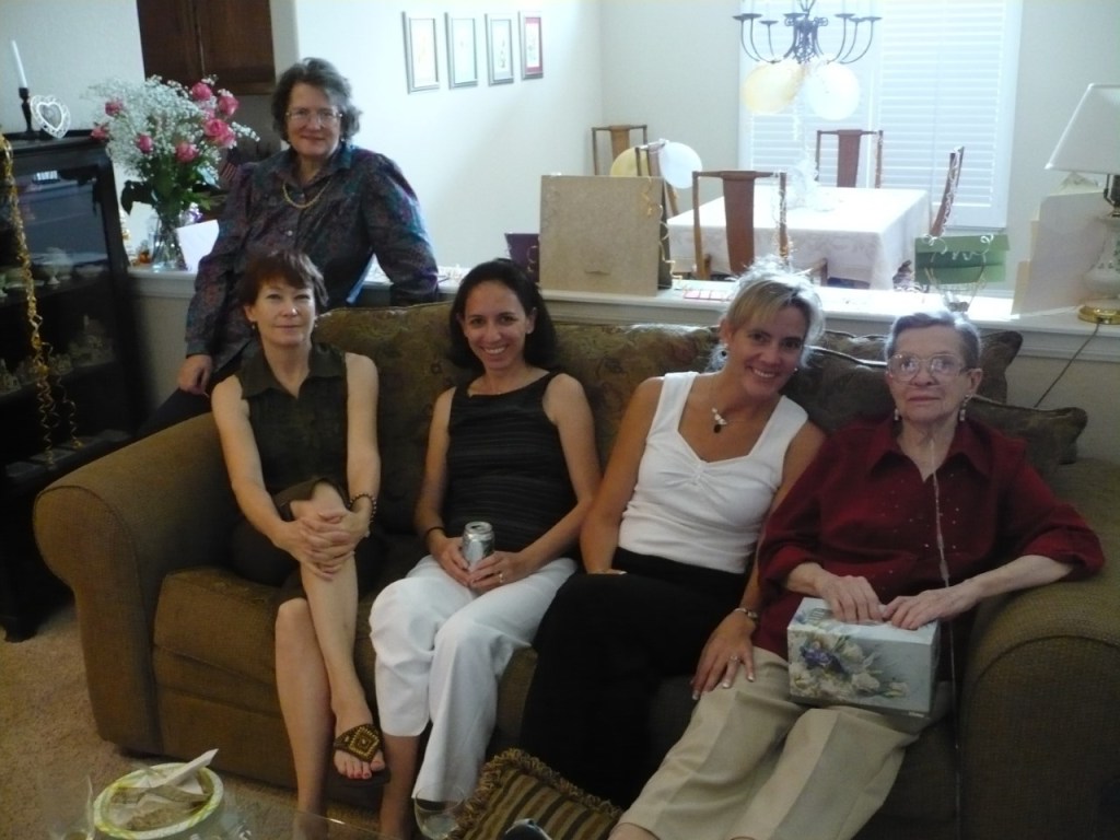 The note apparently worked because they did get married. They celebrated their sixtieth anniversary a couple of months before my mother died. The January before their September anniversary, doctors diagnosed my mother with cancer and told her she had three to six months to live. She told them that wasn’t good enough. She needed nine months. The anniversary was that important to her, and she did make it. (The photo accompanying this article is one taken of all us women at the get-together.)