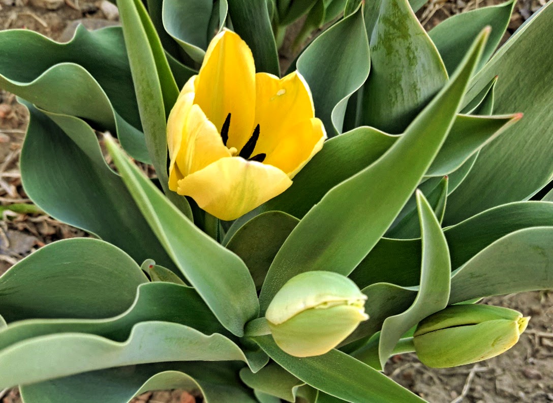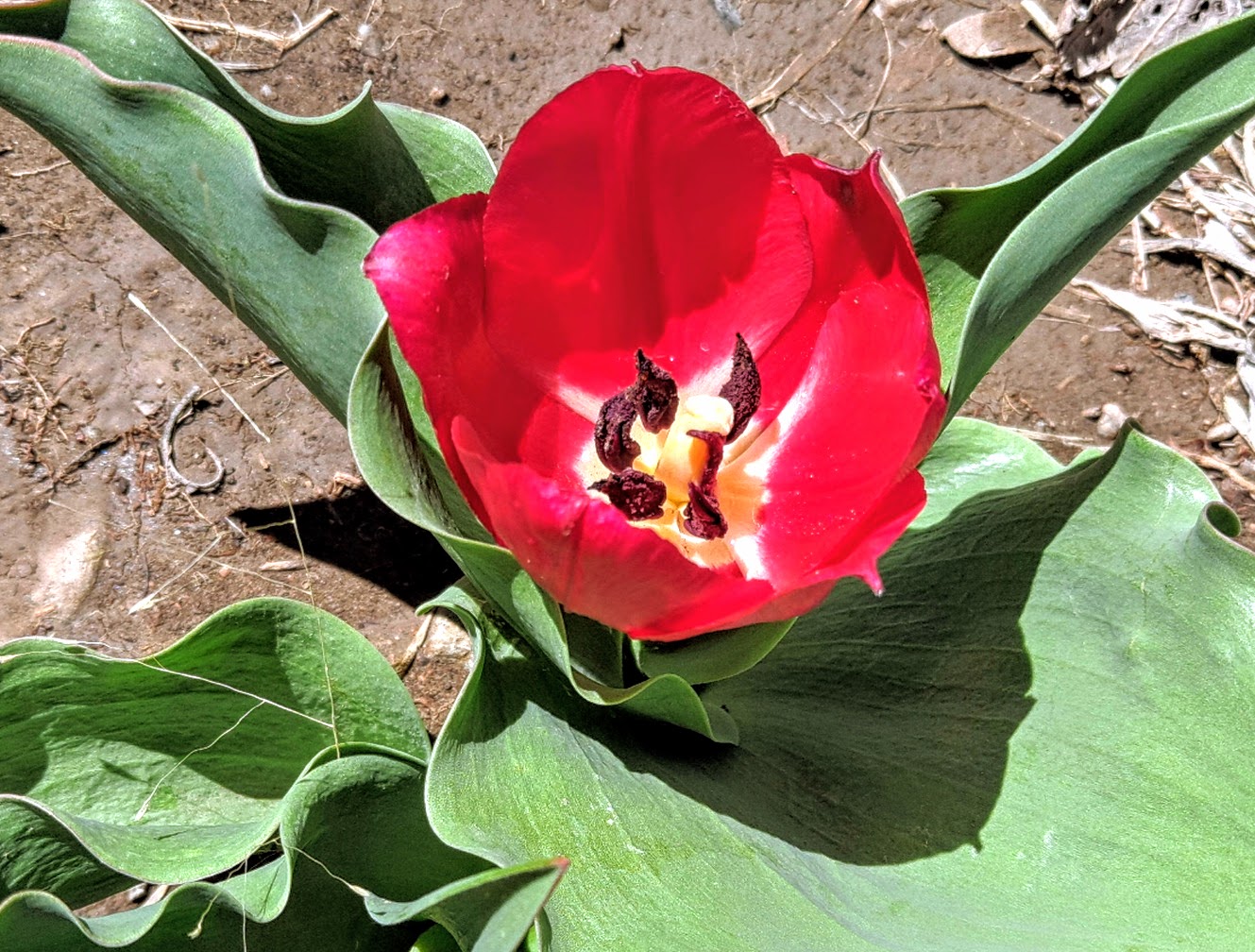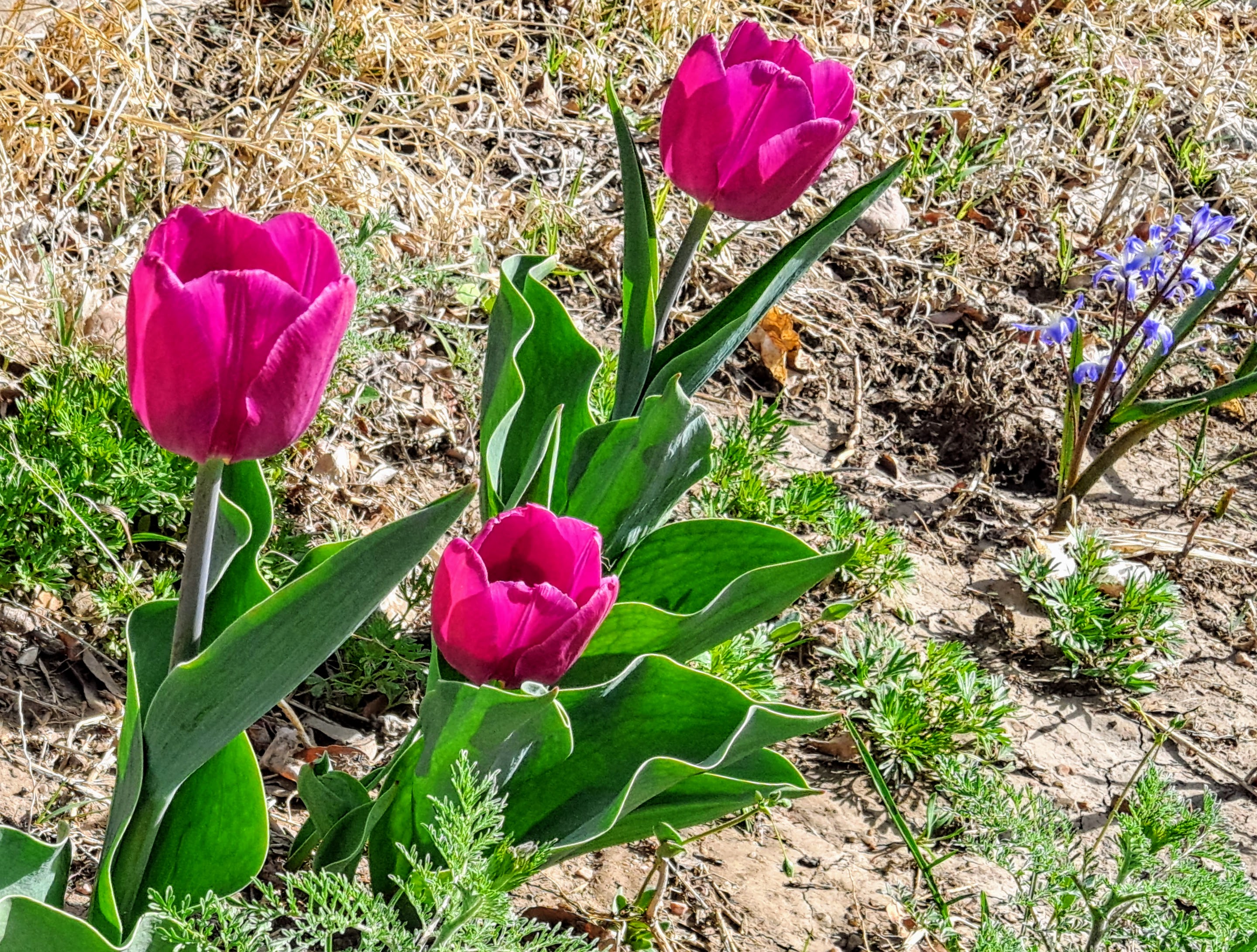 Another thing I learned is that what you get is what you get. So much of tulip gardening in the dry high plains is a matter of weather and hence beyond our control. This year, for the first time since I’ve lived in this house, we had heavy snows at the beginning of November, followed by a few half-hearted snowfalls rather than the reverse, which is what we usually get. Because of that early snow, tulips that lay dormant last year burst forth with color this year. Even my poor sun-drenched garden put forth a few lovely blooms.