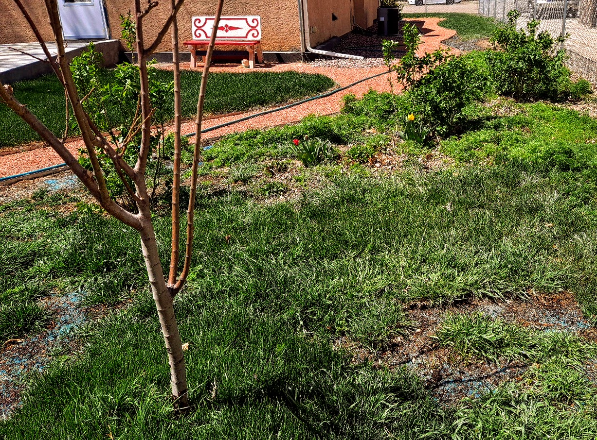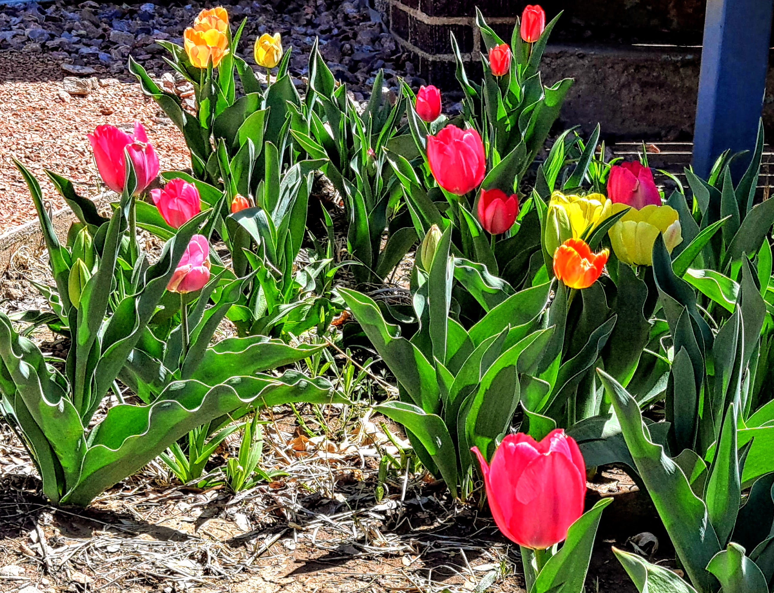 That’s when I realized it’s okay to be appreciative, but it’s not okay to compare. Her tulip garden is decades older than mine, so it’s had time to mature. It’s in the shade, which around here is necessary since the sun, even on cool days, tends to be intense. (And one of my tulip gardens is always a bit sickly since it gets more sun than the poor things can handle). And anyway, seen for what they are, each of my little displays is perfect.