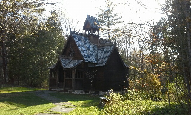 (Other Norwegian buildings found a place on the peninsula, such as the hand-made and hand-carved chapel.)