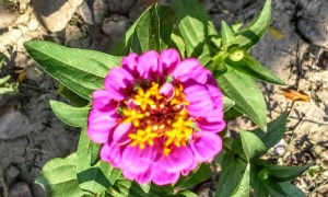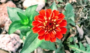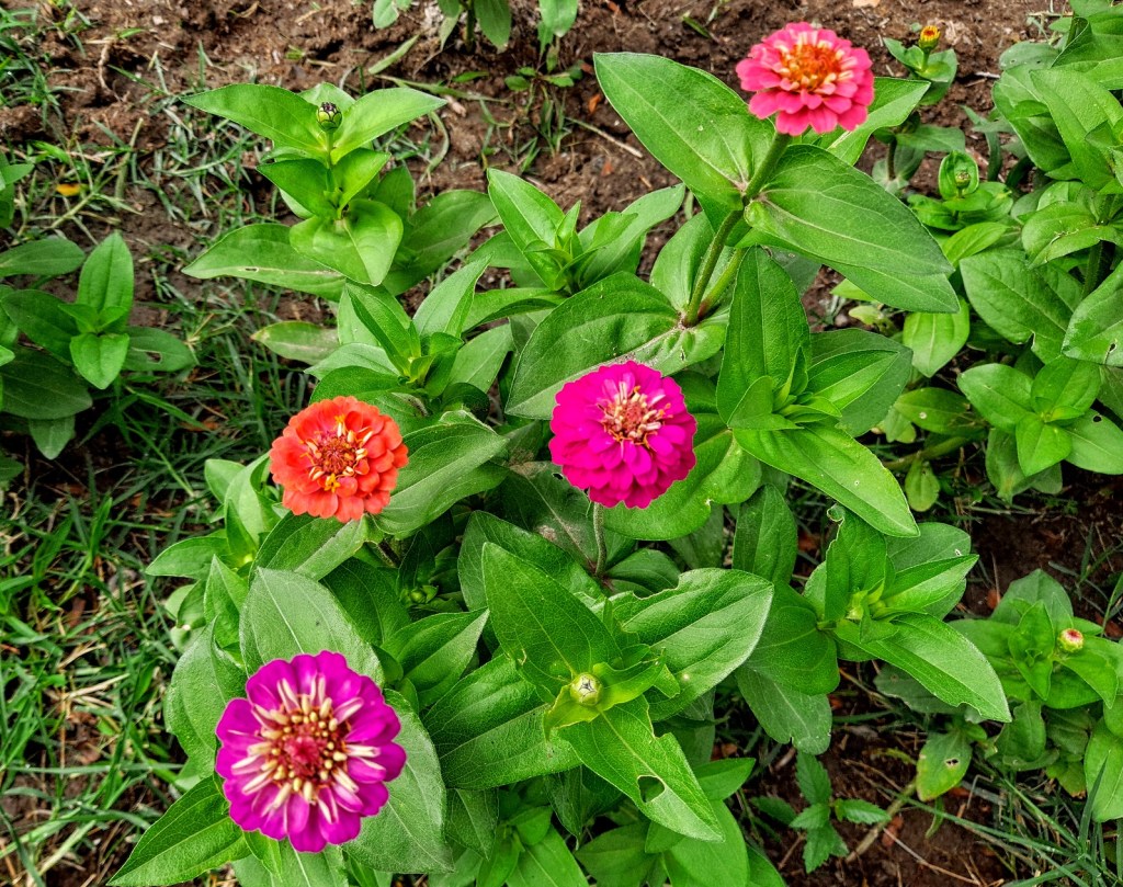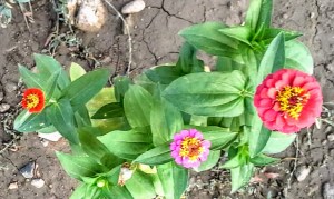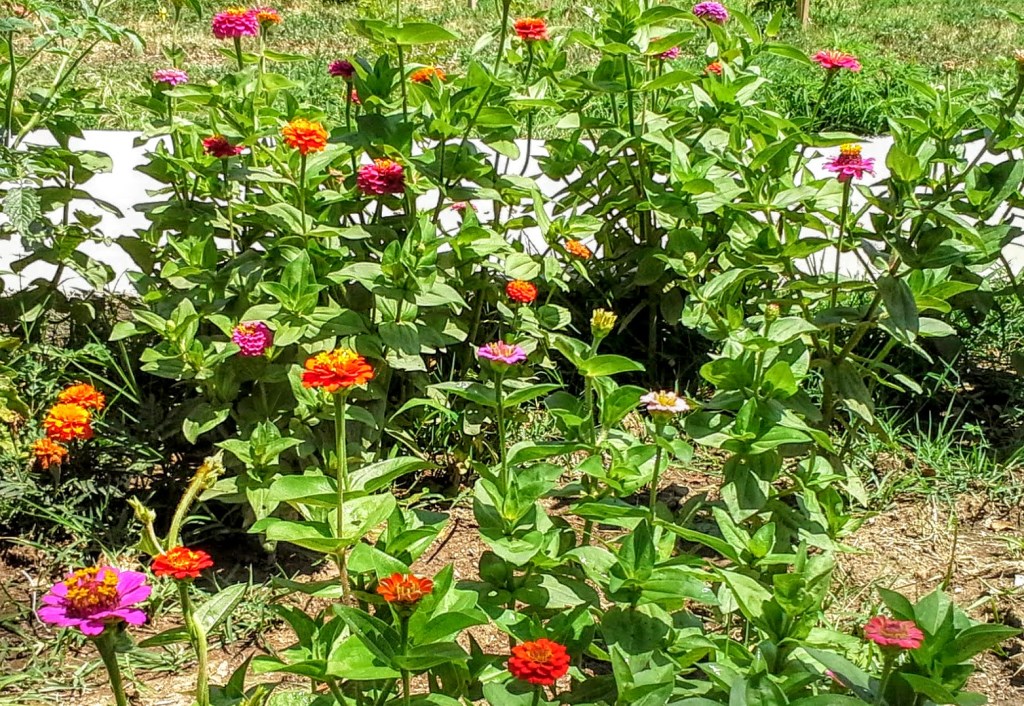 And on a happy note — the zinnias managed to survive quite nicely. A couple of flowers broke off, but the rest are growing cheerfully.