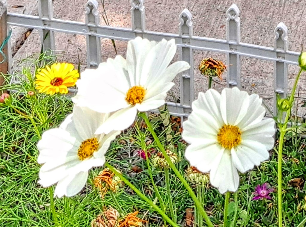 For about three weeks, ever since my S.A.D. times passed, I’d been getting back into the feel of gardening. I’ve had more flowers this year than ever before, and they were doing well. I especially enjoyed the variation on a theme that was going on in my wildflower garden.